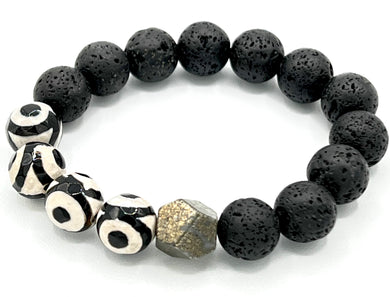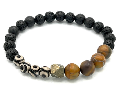 Mini-Evil Eye-Lava-Bamboo Jasper Bracelet